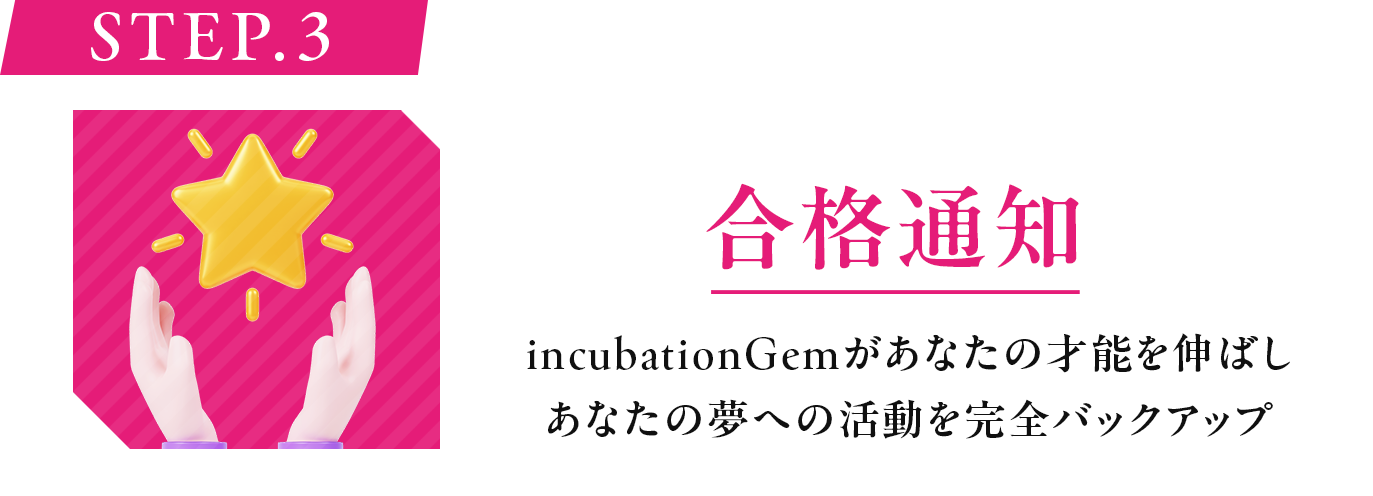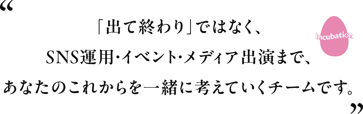 メニュー 恋リア参加のメリット インキュベーションとは? 参加条件について 応募の流れ 注意事項について 北爪美月 らん 藤田みあ 中川そら Kirari 審査過程の交通費・諸費は個人負担となります 未成年の方は保護者の同意の上、ご応募下さい 必ず候補者の同意を得てご応募ください LINEで連絡が取れない場合は、選考ストップ オーディション時は録音・撮影は禁止です 事務所への直接訪問は一切お断りしております エントリー前の疑問点・相談など 気になる点はお気軽にお問合せ下さい お問い合わせはこちら 住所、電話番号、氏名、性別、年齢(以下「個人情報」といいます。)はincubation運営事務局が管理します。お客様の個人情報は、本キャンペーンの当選者への連絡の目的で利用し、それ以外の目的では使用致しません。また、お客様の個人情報をお客様の同意なしに業務委託先以外の第三者に開示・提供することはありません。(法令等により開示を求められた場合を除きます) 個人情報開示訂正等のお問い合わせはインキュベーション運営事務局info@incubation-audition.comまでお願い致します。 プライバシーポリシー ©Incubation. All rights reserved.